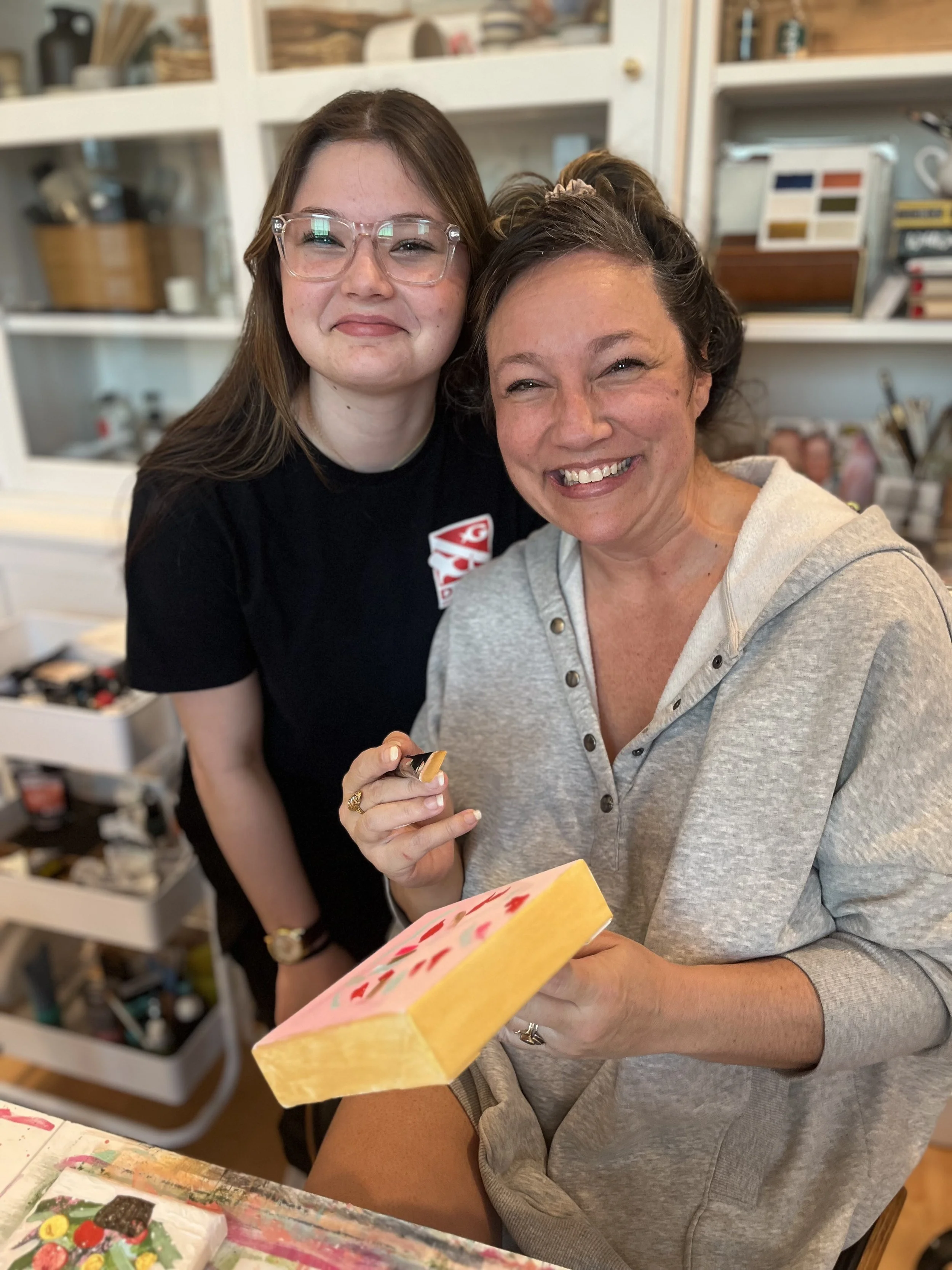 me, painting a beginning to a holiday canvas with my girl. also noteworthy: taken by my very best friend to document a piece of this year.